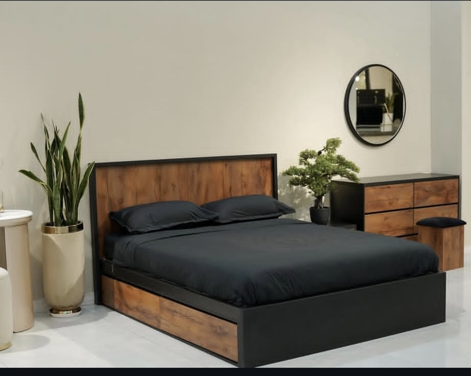 سرویس خواب میلان شامل تخت ۲۰۰×۱۶۰ با جک و کشو و میز آرایش و آینه و صندلی و یک عدد پاتختی می باشد